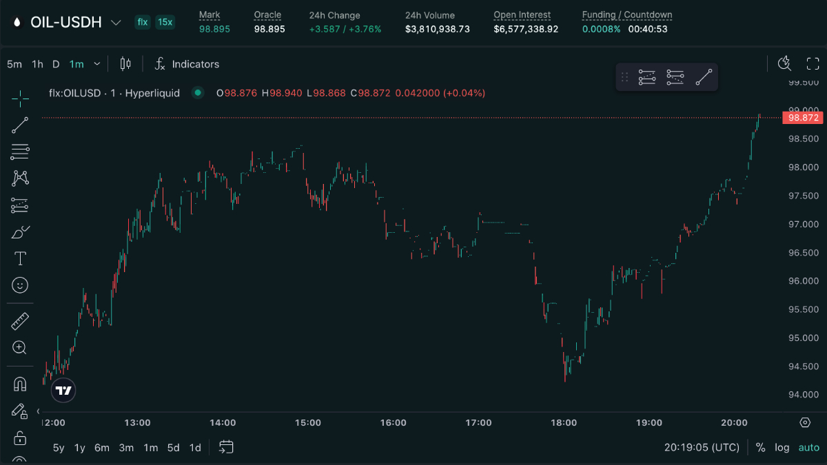 OIL-USDH — это бессрочный фьючерс на нефть марки West Texas Intermediate (WTI), номинированный в стейблкоине USDH. Это делает его удобным инструментом для пользователей, которые уже держат капитал в экосистеме USDH на Hyperliquid.