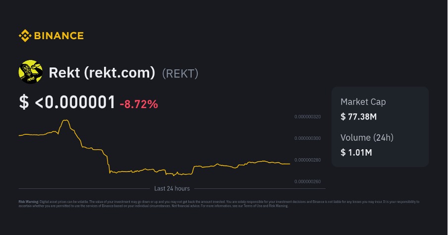 Rekt превращает сценарий болезненных «rekt» моментов криптовалюты в культурную силу. Это больше, чем токен — это бренд с доходом от искусства, напитков (расширение REKT Energy) и коллабораций. На Ethereum он может похвастаться заблокированной ликвидностью и реальной полезностью.