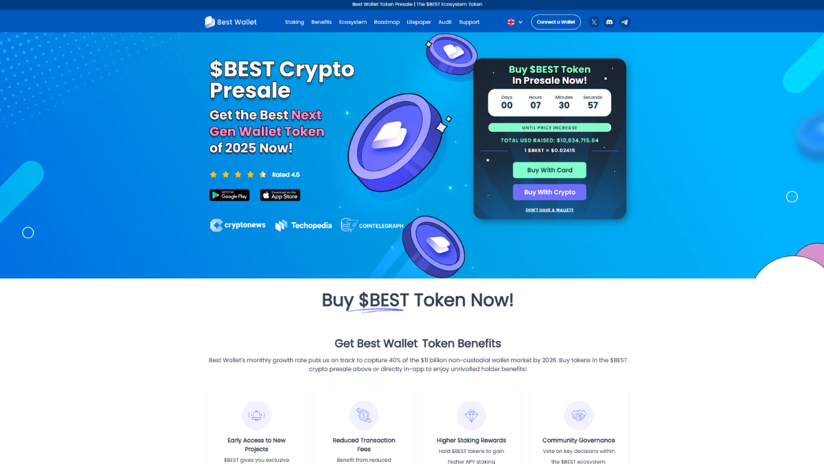 Best Wallet ($BEST) — это инновационный криптокошелек, который сочетает удобство использования с продвинутыми возможностями для опытных инвесторов. В отличие от традиционных решений, он не требует KYC и поддерживает мультицепочные операции, позволяя трейдерам безопасно хранить, покупать, продавать и обменивать цифровую валюту.