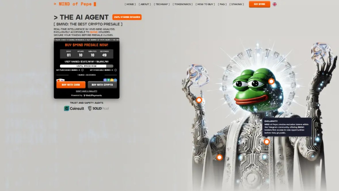 Mind of Pepe объединяет мемы и аналитику на основе ИИ, помогая трейдерам разбираться в рынке. Пресейл собрал $8 млн, токен стоит $0,0037 или 0,15 грн, стейкинг дает 281% годовых. Запущенный в 2025 году, проект предлагает прогнозы, которые упрощают торговлю даже для начинающих. В отличие от других мемкоинов, $MIND дает реальную пользу: ИИ анализирует тренды, снижая ошибки. Мемкоины остаются популярными, а ИИ-решения — тренд года. Платформа интегрируется с кошельками, покупка доступна онлайн. Для пользователей это возможность совместить интерес к крипте с обучением. $MIND выделяется балансом веселья и технологий, что сулит рост на следующем этапе рынка.