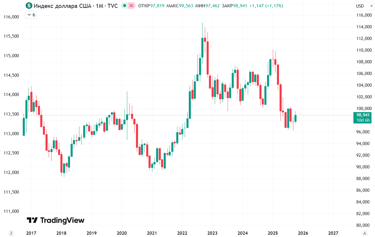 Индекс доллара США, месячный график