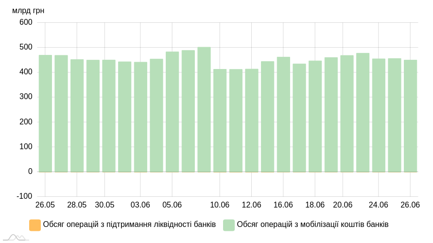 Дефицит предложения доллара на рынке будет закрывать Нацбанк, активно проводя интервенции по продаже американской валюты. По моим расчетам, для поддержания курса гривны на торгах на период с 30-го июня по 4 июля НБУ потратит порядка $560 млн — 870 млн.