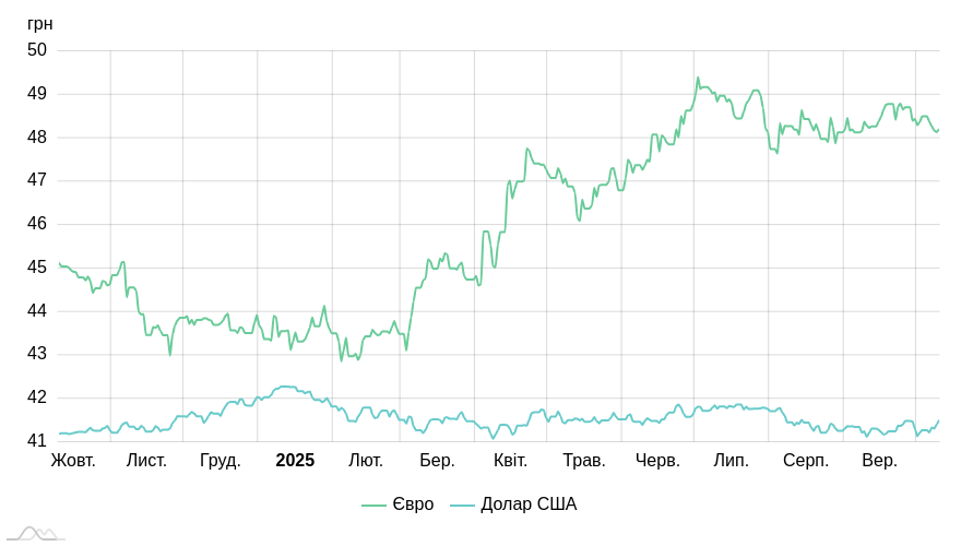 Против гривны в эти дни, конечно, сработало утверждение правительством законопроекта об очередном увеличении расходов в бюджете-2025. Это уже второй пересмотр главной сметы страны: в конце июля расходы были повышены на 412,4 млрд гривен. И это негативно влияет на настроения всех участников рынка.