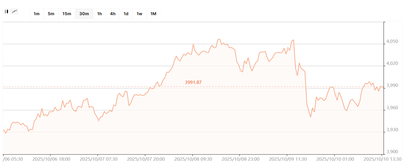 Кроме того, шатдаун в США спровоцировал очередные ралли цены золота на мировом рынке: его стоимость в моменте пробивала новый психологический порог в $4 000 за унцию и устремилась выше, правда, потом все же опустилась чуть ниже этой психологической отметки. На момент написания статьи унция золота стоит порядка $3 992.