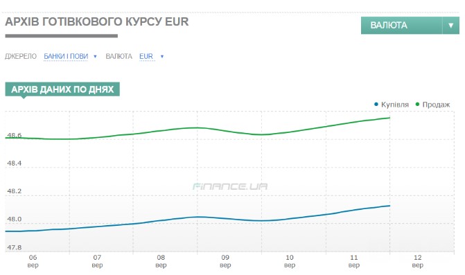 Курс наличного евро в выходные будет находиться в пределах коридора: прием от 48,2 до 48,55 грн., продажа от 48,60 до 48,80 грн.