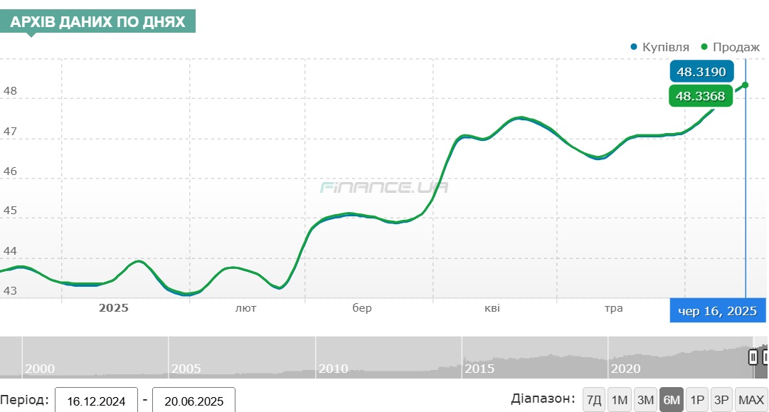В итоге курс евровалюты в Украине остается волатильным и непредсказуемым. Еще в декабре 2024 — феврале 2025 года он стабильно находился в пределах 43−44 гривен. Но затем, за короткий промежуток времени взлетел к отметкам 48 гривен за евро и даже выше. Понятно, что тут «первую скрипку» играет фактор укрепления евро относительно доллара в мире, но и украинские реалии нашего валютного рынка также вносят свои коррективы в такое поведение котировок.