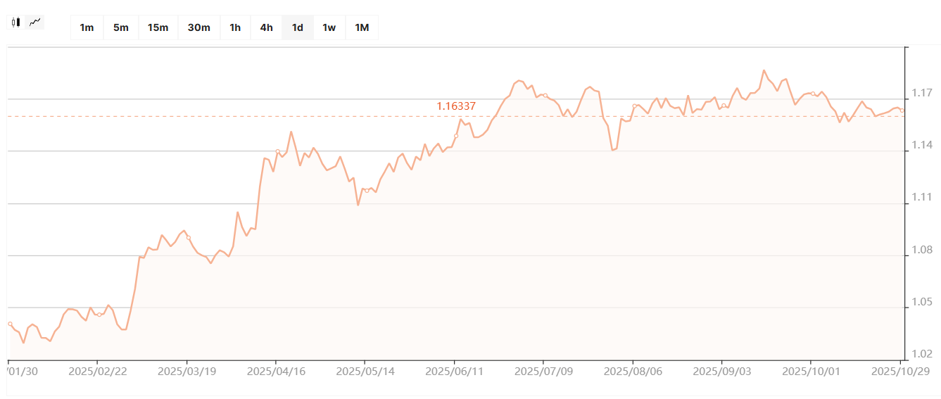 График пары евро/доллар с марта 2025 года (с момента усиления тарифных войн)