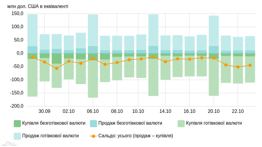 Одновременно на гривну будут давить увеличение расходной части казны еще на 325 млрд гривен, начало отопительного сезона и усиление атак россии на объекты критической и гражданской инфраструктуры, а также приближающийся конец года, когда государство начинает закрывать свои обязательства перед получателями бюджетных средств.