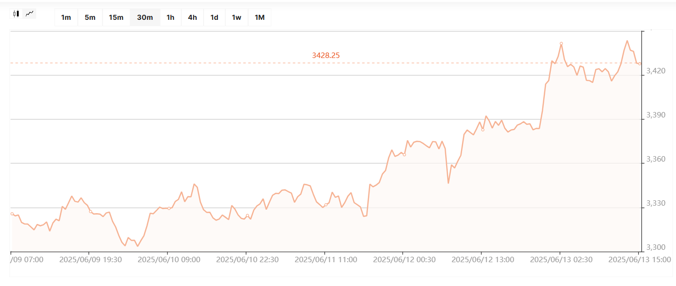 Как следствие, взлеты цен на нефть на опасениях расширения ближневосточного конфликта, а также громкие заявления политиков по всему миру, что еще больше нервирует инвесторов. Не зря на этом фоне золото, как защитный актив, снова пошло вверх, превысив уровень в $3 428 за унцию на момент написания статьи.