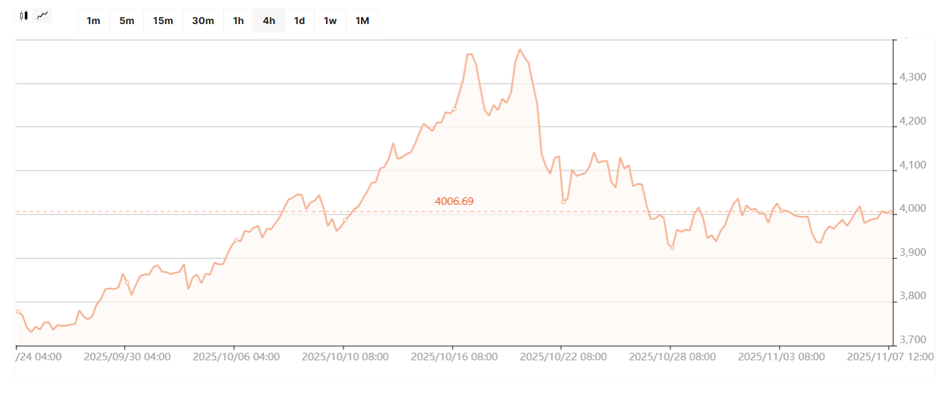 Правда, более существенного проседания пока не происходит: золото закрепилось около уровня $4000 за унцию. Это говорит о том, что мировые геополитические риски не дают инвесторам расслабиться.