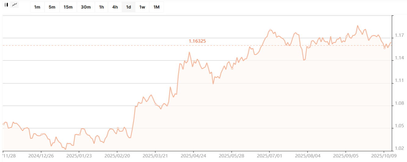 График пары евро/доллар на мировых площадках, ноябрь 2024 г. —ноябрь 2025 г.