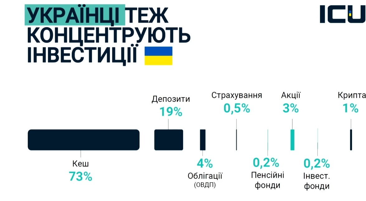 «Но это далеко не описывает всех украинцев. Когда мы суммируем весь накопленный капитал, то видим, что 9 из 10 гривен капитала хранится в нефинансовых активах. Это недвижимость, авто, земля. Именно это — наши базовые инвестиции», — говорит Свистунов.
