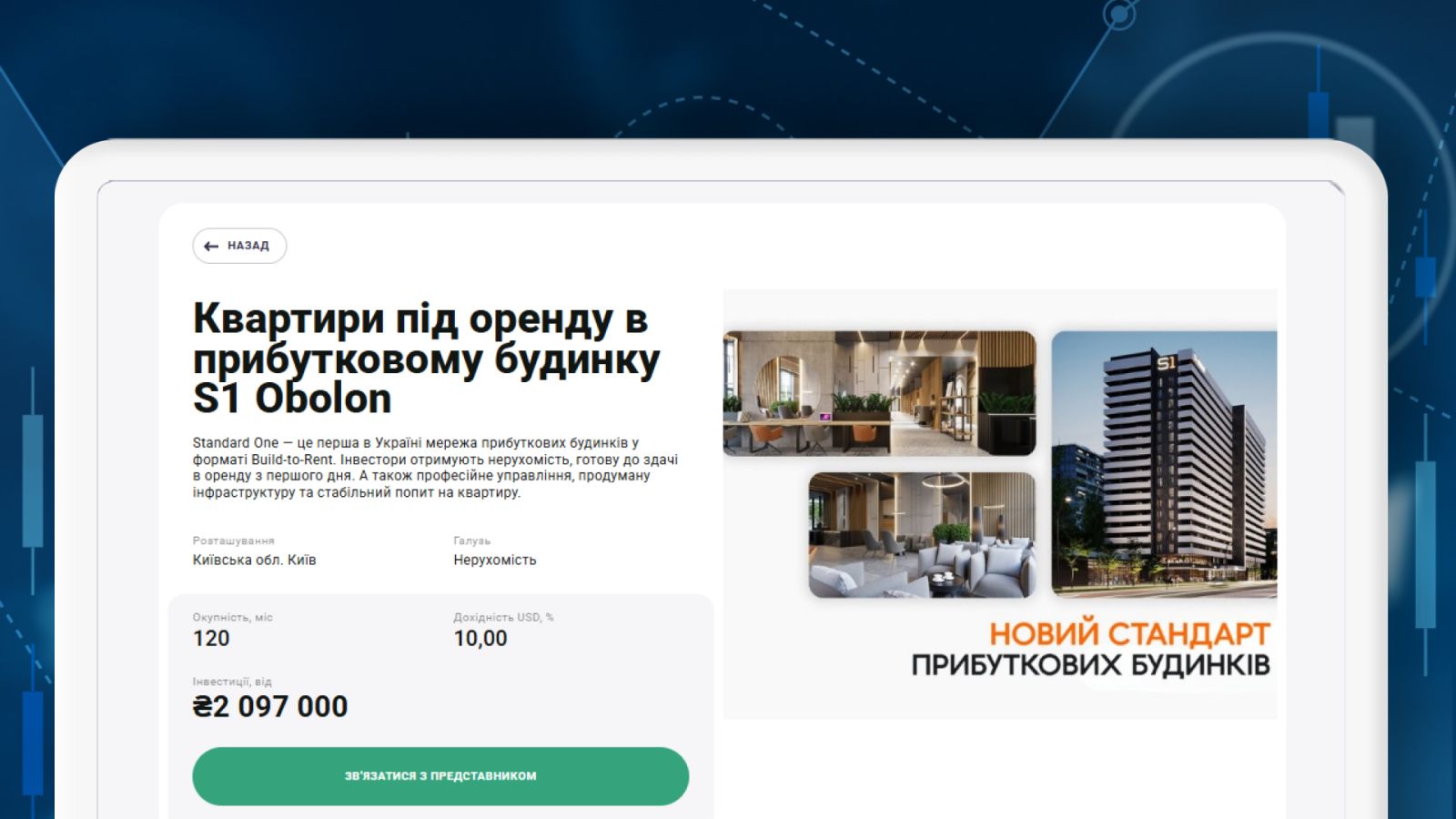 Например, в каталоге InvestMarket представлено предложение о покупке квартиры под аренду в прибыльном доме S1 Obolon. Инвесторы получают недвижимость, готовую к сдаче в аренду с первого дня.