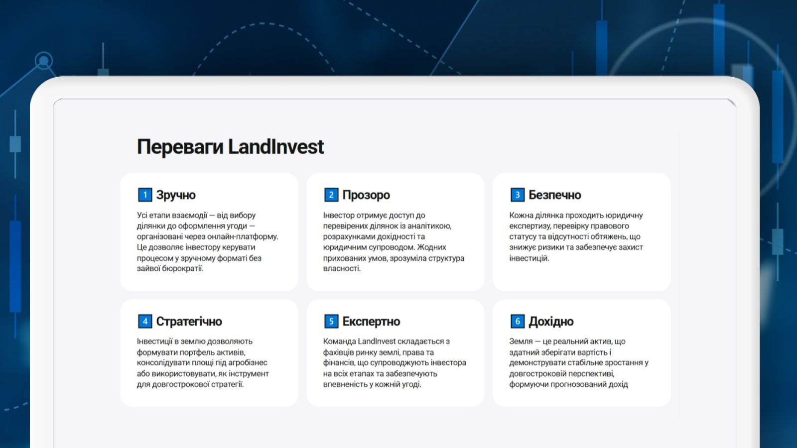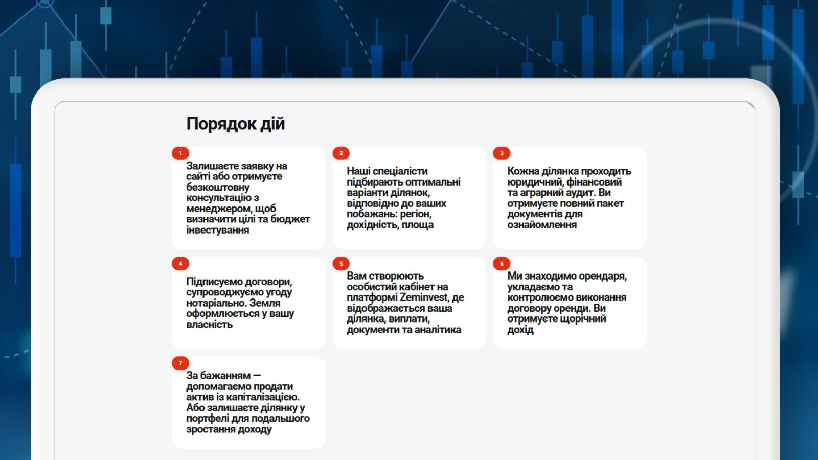 В то же время есть возможность инвестировать даже с минимальным стартовым капиталом — от 1 000 грн. Фонд Ґрунтовно предлагает купить земельные инвестиционные сертификаты и стать совладельцем участка. Такой механизм вполне понятный и доступный, если вы хотите начать с небольших вложений и понять, как работает инвестиция.