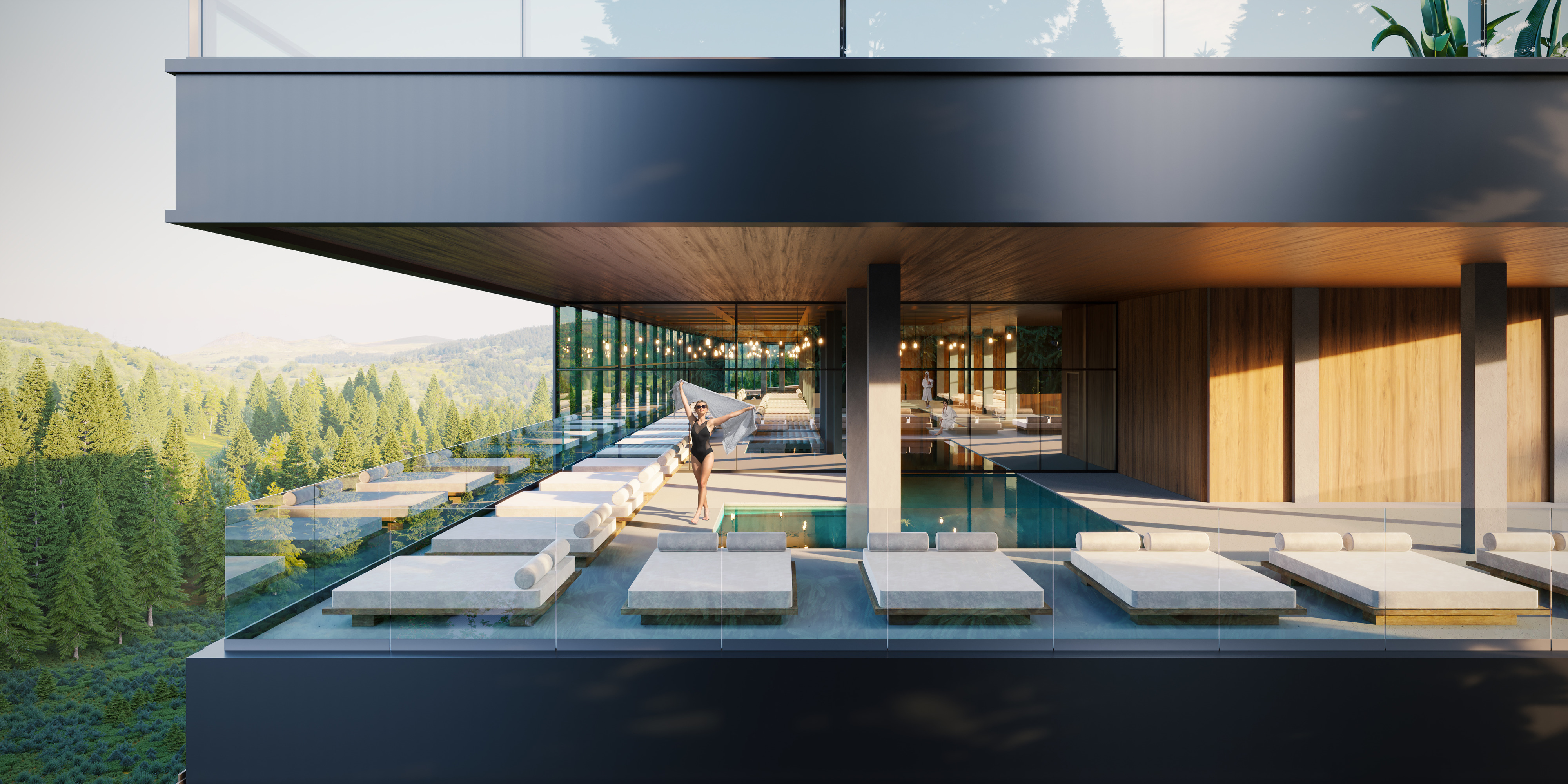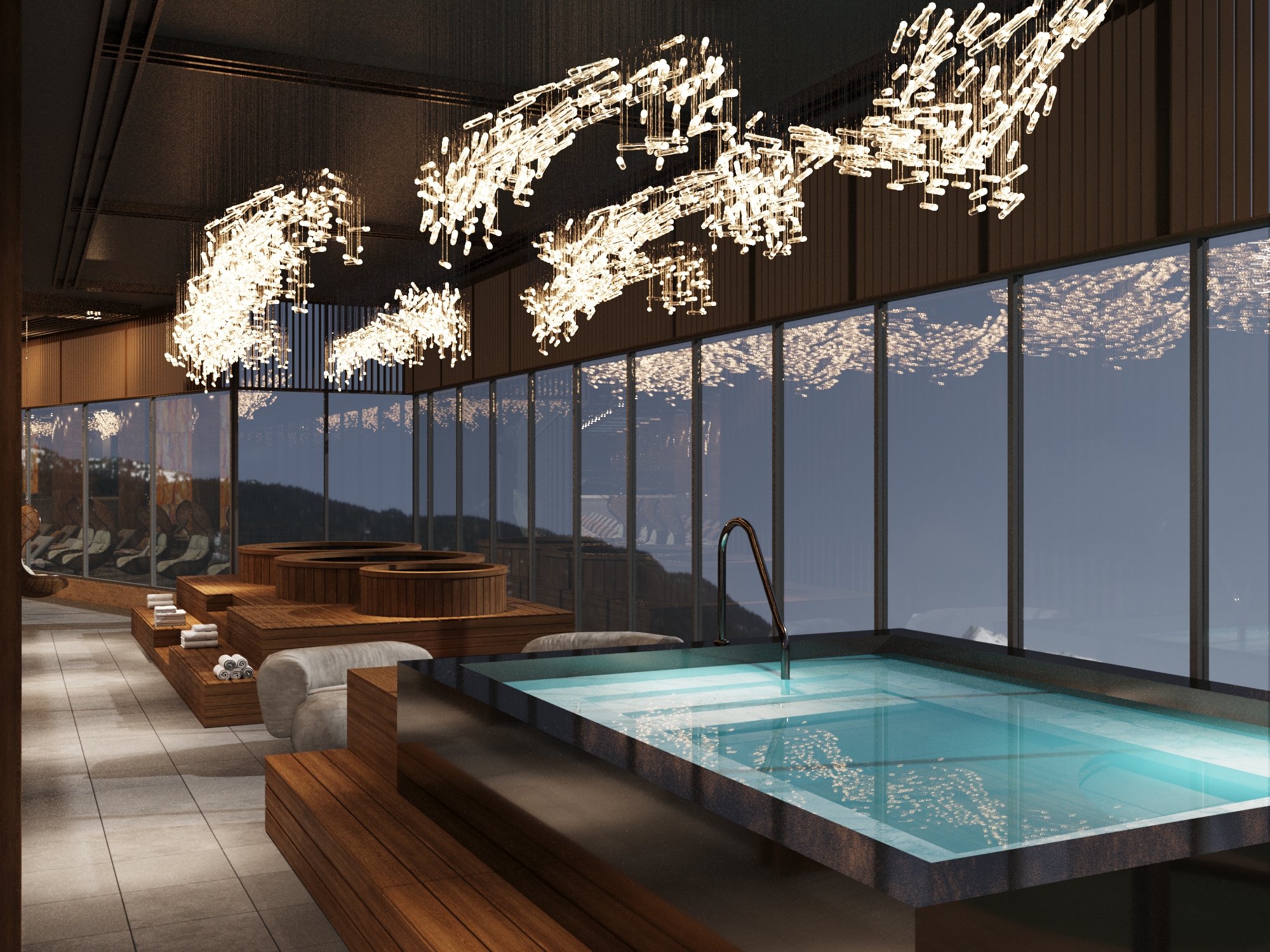 2. Большая панорамная SPA-зона 3000 м² с парными, саунами и джакузи