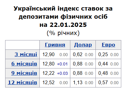 Наприклад, станом на 22 січня «чисті» ставки за гривневими вкладами (з огляду на оподаткування) у середньому за банківською системою становлять:
