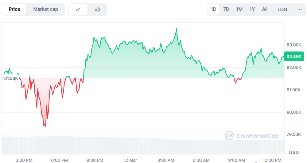 «Мінфін» писав, що в ніч з 10 на 11 березня ціна першої криптовалюти в моменті впала до $76 806.