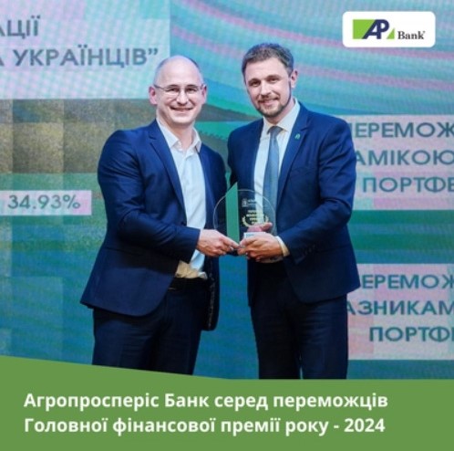 Агропросперіс Банк здобув перемогу в кількох номінаціях «Головної фінансової премії року — 2024», яку проводить Асоціація українських банків (АУБ). Церемонія нагородження об'єднала понад 90 представників провідних фінансових установ, державних та регуляторних органів, підкреслюючи значення прозорої конкуренції та інновацій у банківському секторі.