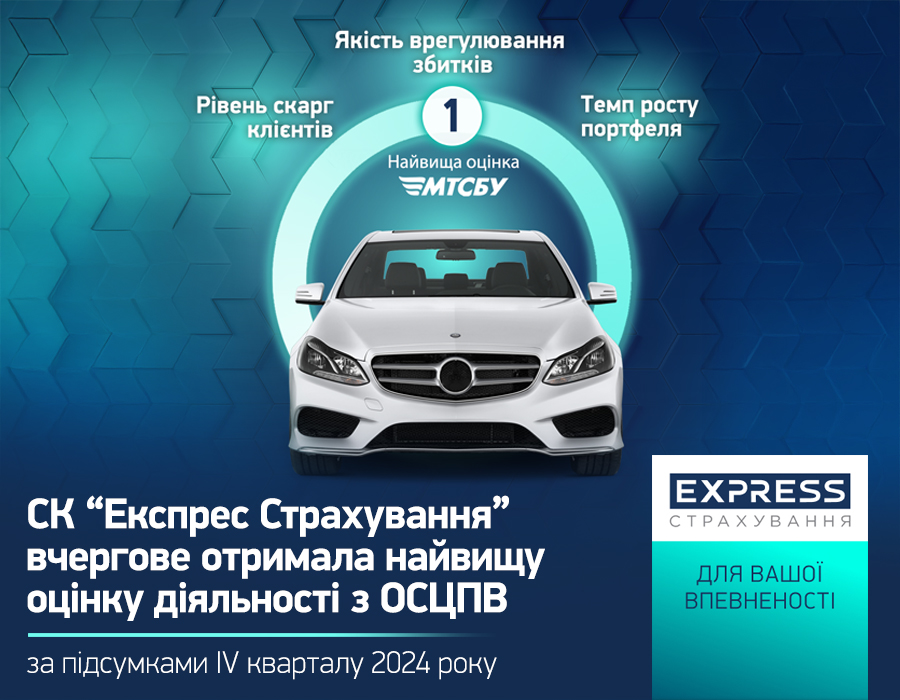 СК «Експрес Страхування», що входить до Укравто Груп, отримала найвищу загальну оцінку («1») діяльності з обов’язкового страхування цивільно-правової відповідальності автовласників (ОСЦПВ) за підсумками IV кварталу 2024 року. Дані оприлюднені на офіційному сайті МТСБУ.