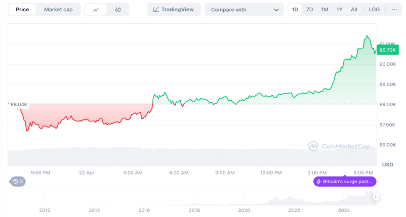 В останні дні ціна Біткоїна знову опинилася в центрі уваги фінансових аналітиків і інвесторів, злетівши до $90,000. Після падіння провідної криптовалюти на початку квітня до $75,000 знадобилося два тижні для відновлення її вартості. На тлі таких коливань багато учасників ринку цифрових активів запитують: купити Біткоїн зараз, чи почекати корекції?