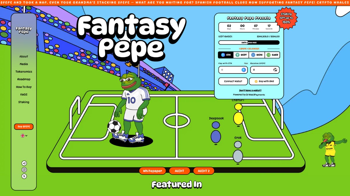 Проект Fantasy Pepe ($FEPE) є блокчейн-грою, що об'єднує мем-культуру, футбольну тематику і технології штучного інтелекту. ШІ-боти, такі як ChatGPT та DeepSeek, управляють віртуальними футбольними командами, а Grok виконує функції автоматизованого арбітра.