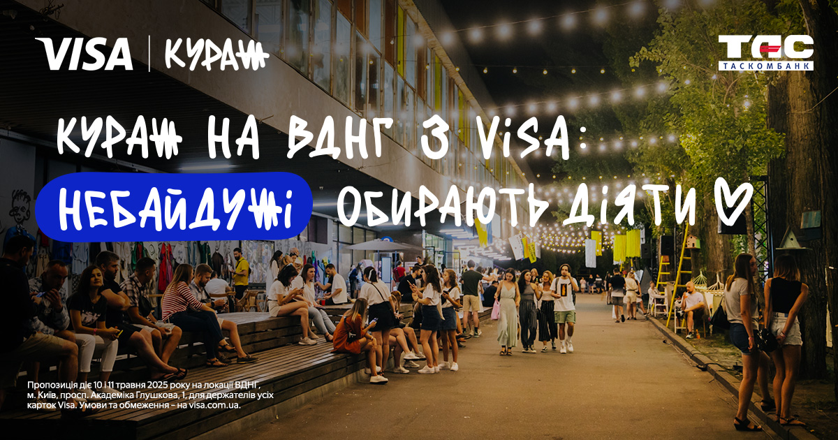 Оплачуйте вхідні квитки карткою Visa від Таскомбанку — і ми перерахуємо на благодійність 100 грн за кожен квиток. Так кожна транзакція відкриватиме двері — для тих, кому потрібна підтримка. І для вас — на «Кураж». Як завжди, Visa разом з організаторами забезпечує інклюзивність заходу — протягом усього івенту буде супровід перекладачів на жестову мову.