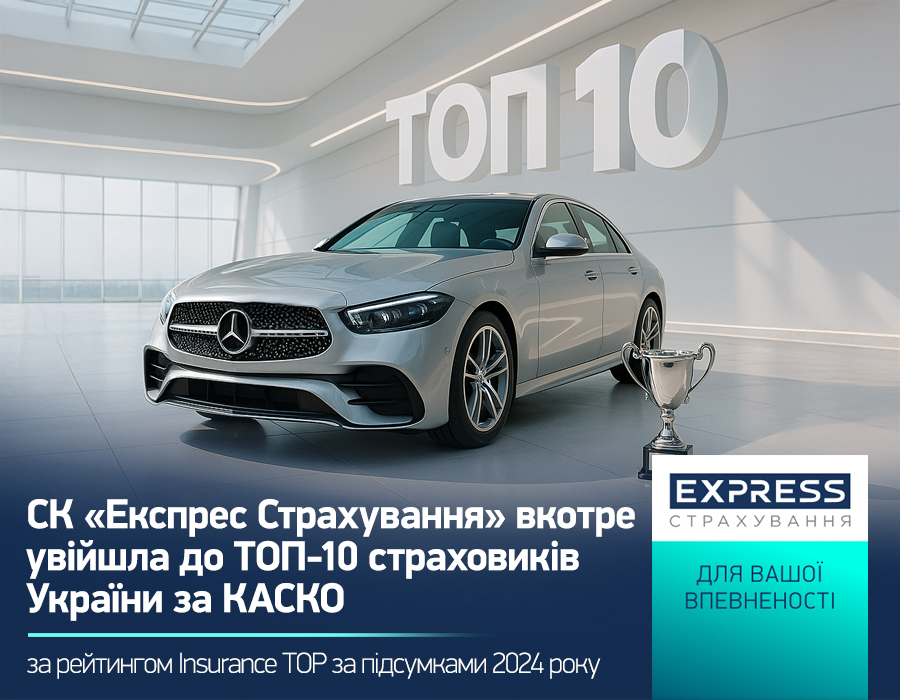 СК «Експрес Страхування» вкотре увійшла до ТОП-10 страховиків України за КАСКО