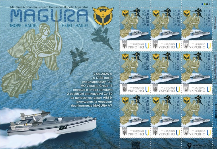 14 травня в межах презентації нових моделей ударних морських дронів ГУР відбулася церемонія спецпогашення поштової марки «MAGURA. Море — наше! Небо — наше!», присвяченої першому в історії збиттю російського винищувача Су-30 ракетою з надводної платформи Magura V7. Про це повідомляє пресслужба ГУР.