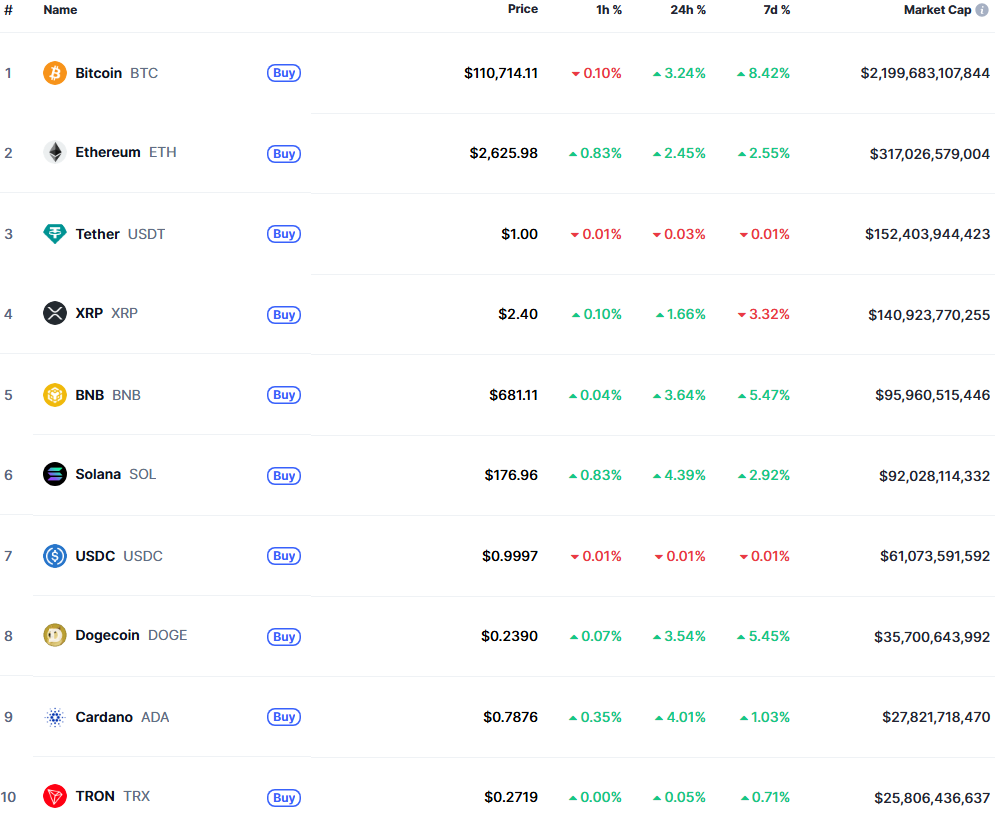У моменті ціна біткоїна досягла $111 746, проте згодом відкотилась назад. На момент написання новини біткоїн торгується на рівні $110 714. За останню добу активі зріс на 3,24%, за тиждень — на 8,42%.