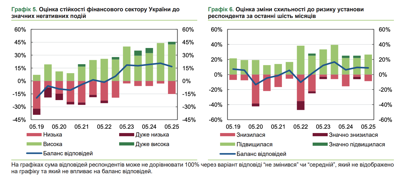 Керівники найбільших банків та небанківських фінансових установ зберегли позитивні оцінки поточного стану та стійкості фінансового сектору, оцінивши стан справ найліпше із 2021 року. Про це свідчать результати «Опитування про системні ризики фінансового сектору» за травень 2025 року.