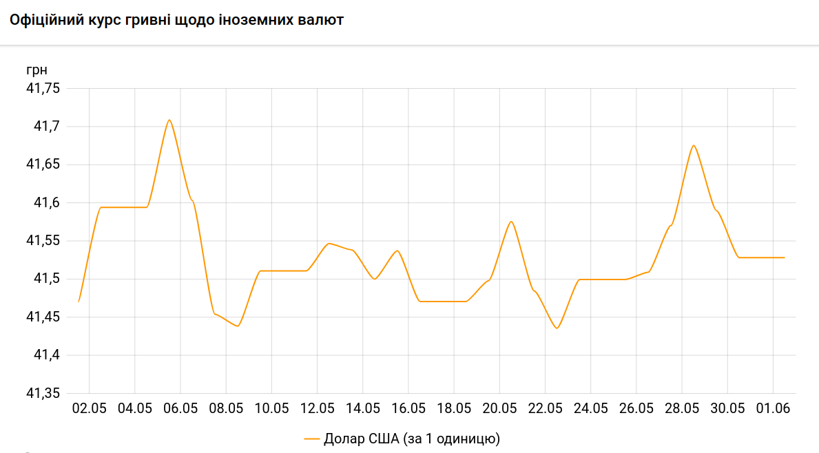Курс долара за місяць зріс лише на 5 копійок з 41,47 грн до 41,52 грн.