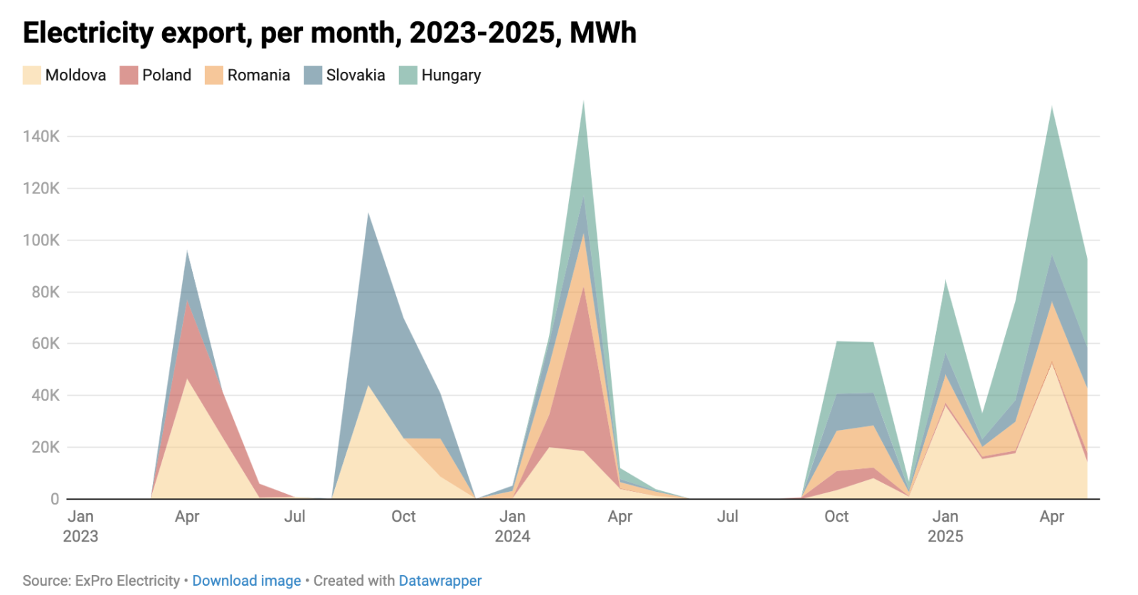 У порівнянні з попереднім місяцем, найбільше скоротився експорт до Молдови. У порівнянні з травнем 2024 р. експорт електроенергії виріс в 22 рази.