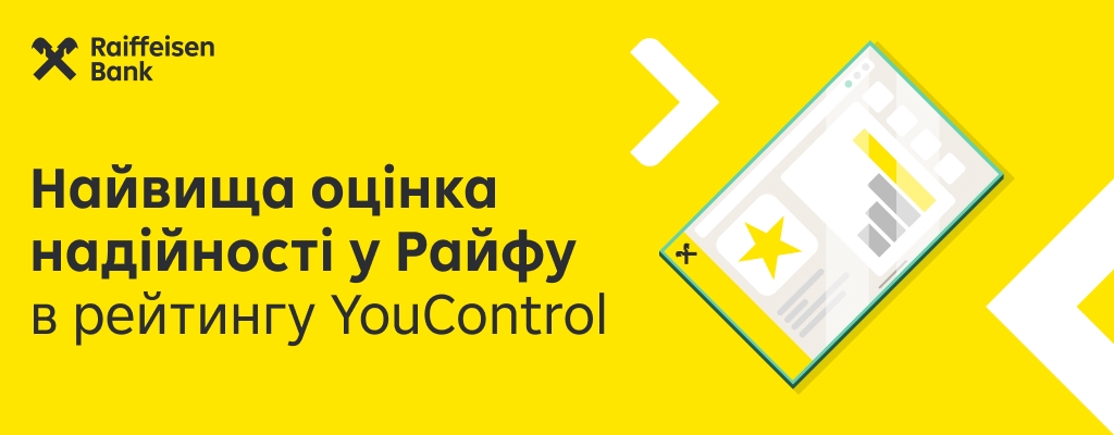 Райффайзен Банк отримує найвищу оцінку надійності у рейтингу компанії YouControl щоразу з моменту початку цього ранжування (1 кв. 2018 року).