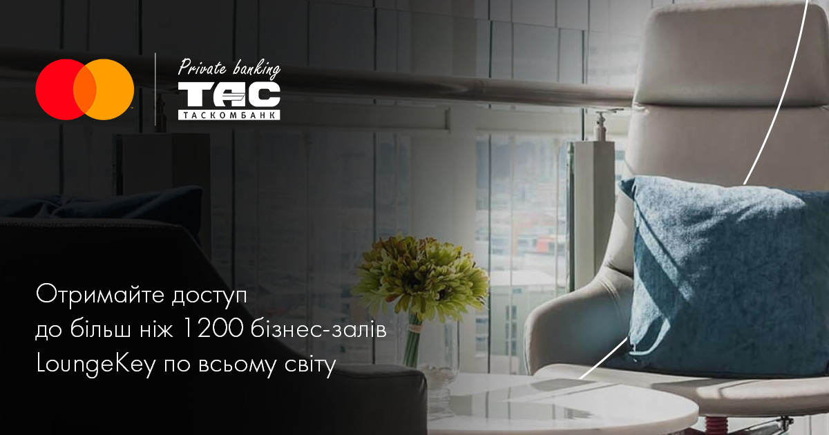 • отримуйте доступ до зали Lounge Key безкоштовно двічі на рік з преміальною карткою World Elite Mastercard® від Private banking Таскомбанку.