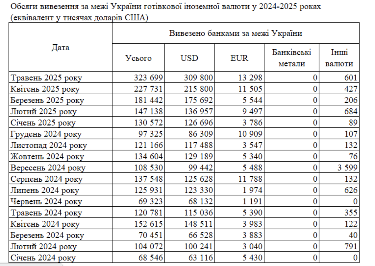 При цьому банки вивезли готівкової валюти на $324 млн.