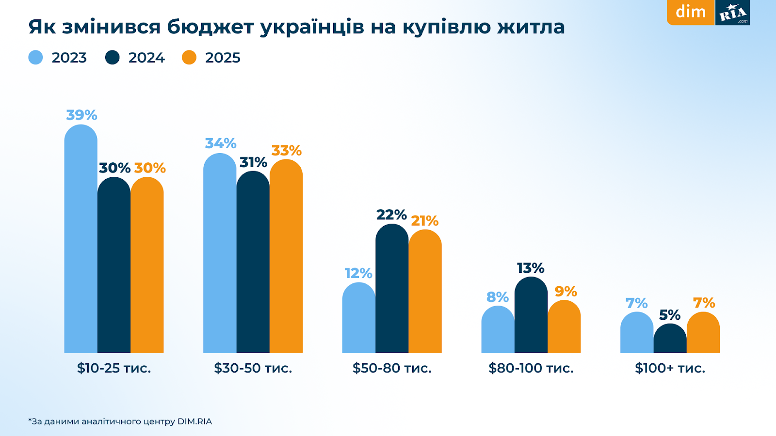 Український маркетплейс перевіреної нерухомості DIM.RIA провів опитування аудиторії, в якому взяли участь понад 1500 українців. Результати показали, що у 2025 році середній бюджет на придбання нерухомості знизився, тоді як орендарі, навпаки, готові витрачати більше.