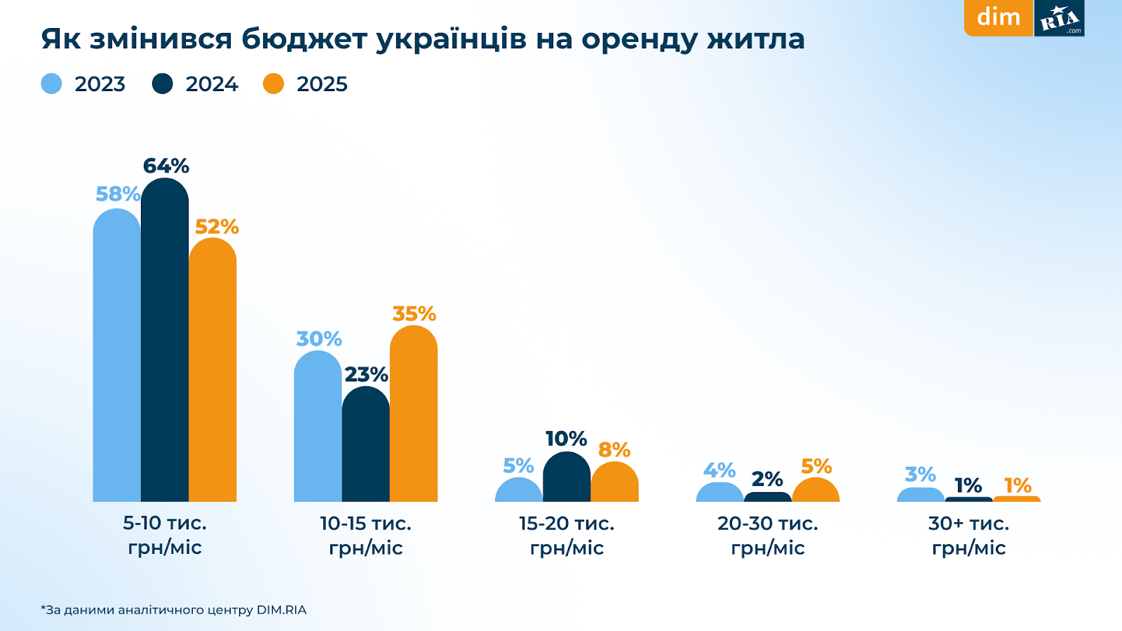 Найбільше опитаних прагнуть знайти житло вартістю до 10 тис. грн на місяць. Однак значна частина збільшила свій бюджет на орендну плату до 15 тис. грн. Водночас 67% респондентів зазначають, що знайти житло у межах бажаного бюджету складно.