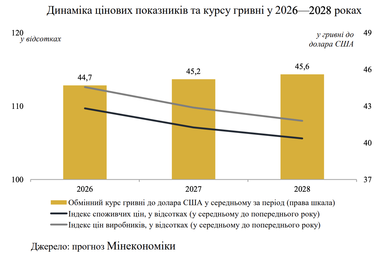 У 2026—2028 роках передбачається послаблення інфляційного тиску. За прогнозом, у 2026 році споживча інфляція у вимірі грудень до грудня становитиме 8,6%. Про це йдеться у постанові від 27 червня 2025 року № 774.