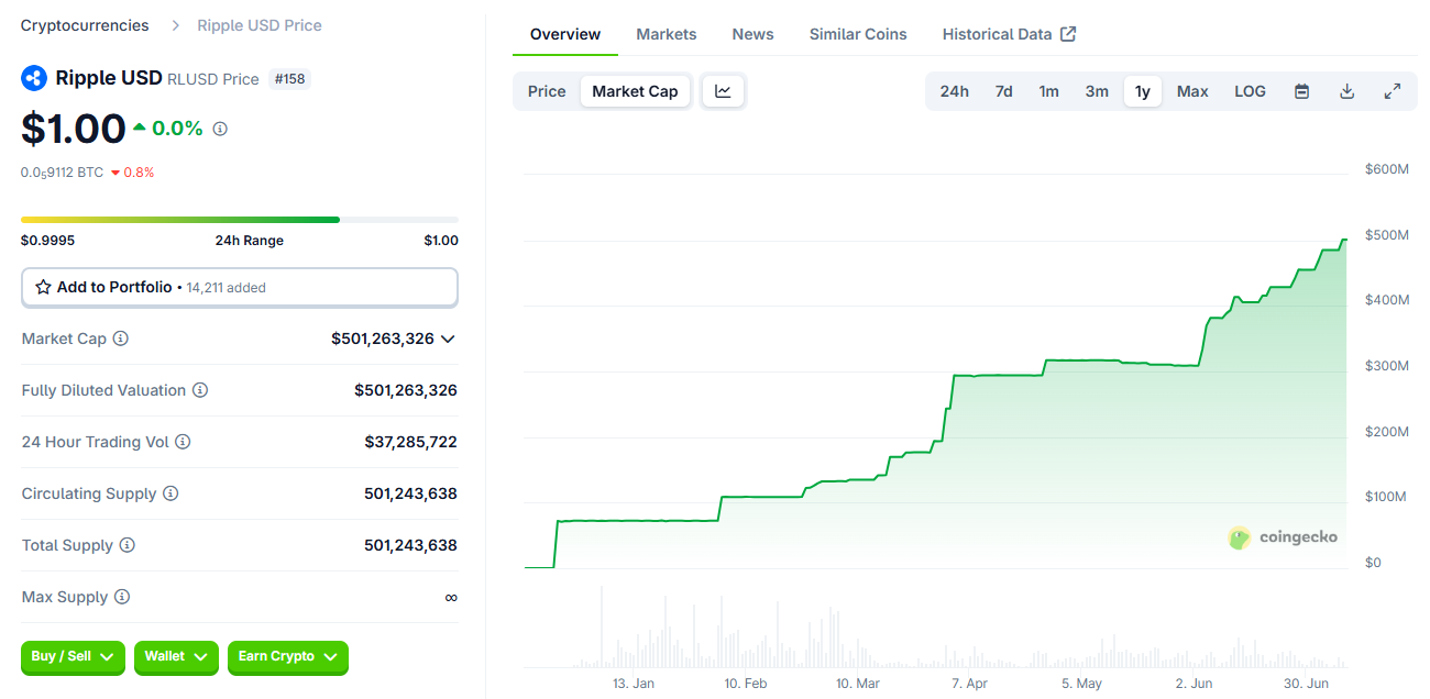 За даними CoinGecko, RLUSD вже увійшов до двадцятки найбільших стейблкоїнів за ринковою вартістю, а його добовий обсяг торгів становить близько $36,6 млн.