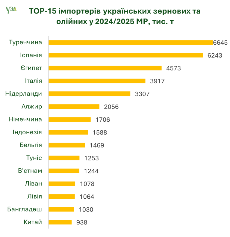 В грошовому еквіваленті за даними митниці експорт зернових та олійних у 2024/2025 маркетинговому році склав $11,2 млрд (у 2023/2024 — $10,76 млрд), а експорт з врахуванням продукції з них, зокрема соняшникової олії та інших олій, макухи та шротів — $18,1 млрд (у 2023/2024 — $17,86 млрд).