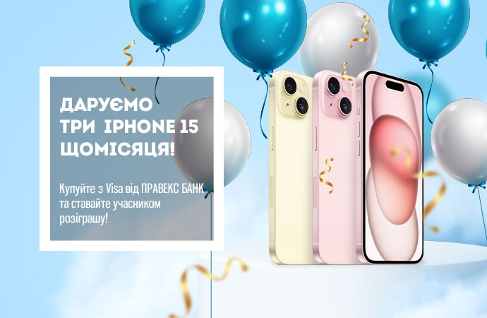 Долучайтесь до акції та вигравайте iPhone 15 від ПРАВЕКС БАНК та Visa!