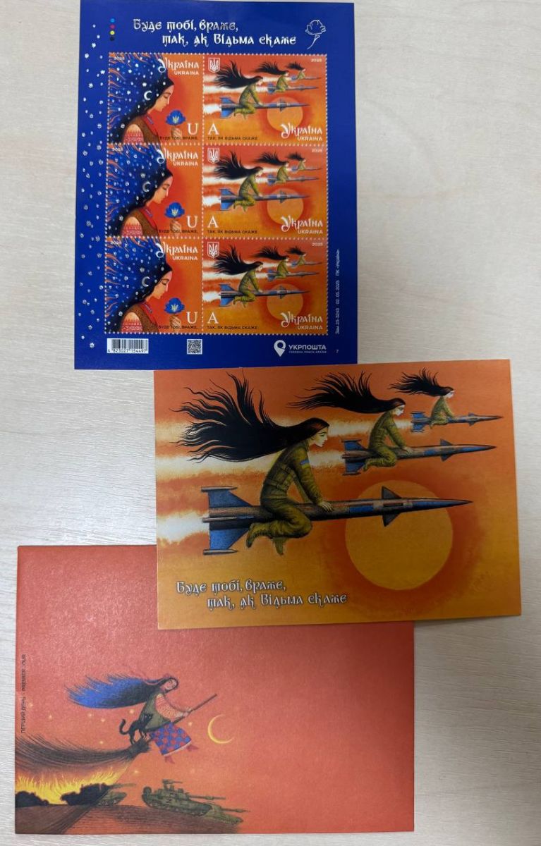 Поштовий набір включає аркуш «Буде тобі враже так, як Відьма скаже», конверт «Перший день» та 2 картки.