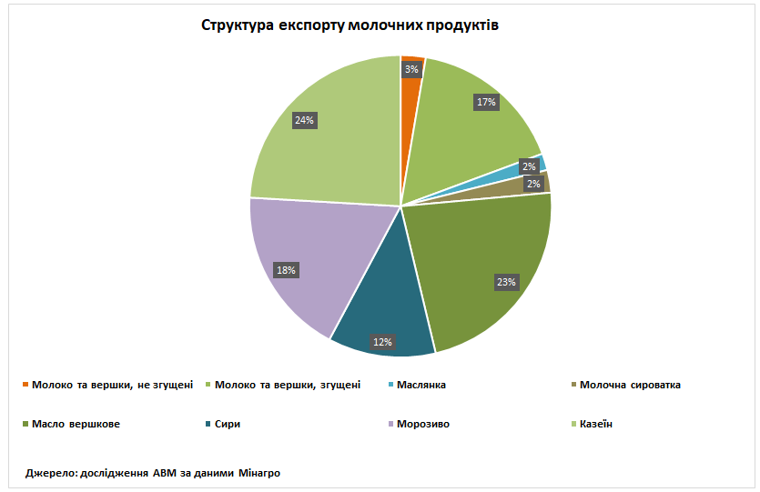 Скоротився виторг за експортовані молоко та вершки, згущені до $7,6 млн (-41%), молочну сироватку до $1,1 млн (-30%), масло вершкове до $10,36 млн (-49%) та сири до $5,26 млн (-13%).