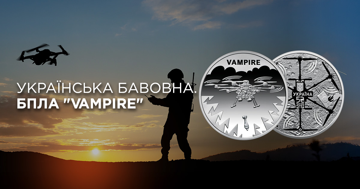 Пам’ятна монета присвячена потужному гексакоптеру «Vampire» — символу технологічної переваги, винахідливості та сили українського спротиву. Розроблений у 2022 році багатоцільовий дрон «Vampire» зарекомендував себе як високоефективний засіб точкового ураження, дистанційного мінування та гуманітарної допомоги. Його активно використовують провідні підрозділи сектору безпеки й оборони України, а понад мільйон проведених операцій засвідчують його ефективність та бойову надійність. Ця пам’ятна монета вшановує внесок українських інженерів, розробників військових та технологічних рішень, що змінюють хід сучасної війни, посилюючи обороноздатність держави.