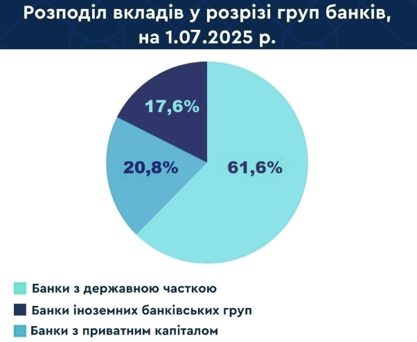 Частка ФОП у структурі вкладників станом на 1 липня 2025 року становила 3,2%, а в структурі суми вкладів — 11,3%. Сума їх вкладів склала 167,6 млрд грн.