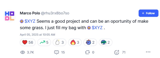 XYZ також привернув увагу авторитетних криптоінфлюенсерів. DanjoCapitalMaster, який має майже 800 000 підписників, нещодавно висловив свою підтримку проєкту, назвавши XYZVerse «можливістю для стрімкого зростання».