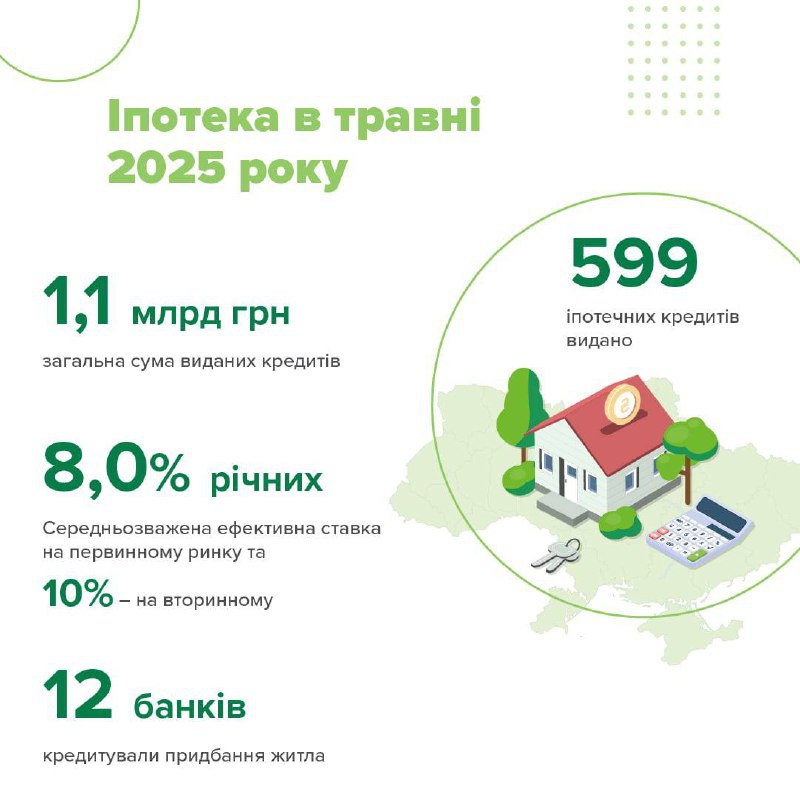 Банки у травні видали 599 іпотечних кредитів на понад 1 мільярд гривень