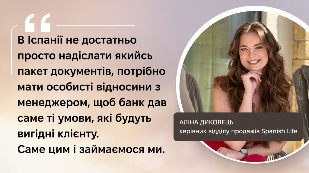 Ще один важливий фактор привабливості ринку — доступна іпотека для іноземців — банки в Іспанії кредитують на суму до 80% вартості об'єкта. Окрім того, є спеціальні програми, наприклад — для молодих підприємців, де можна отримати навіть до 95% від вартості.