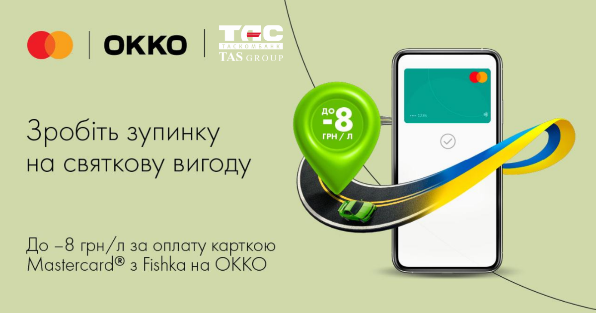 Зробіть зупинку на святкову вигоду до Дня Незалежності! Заправляйтесь на ОККО, оплачуйте карткою Mastercard® Таскомбанк і отримуйте до -8 грн/л.
