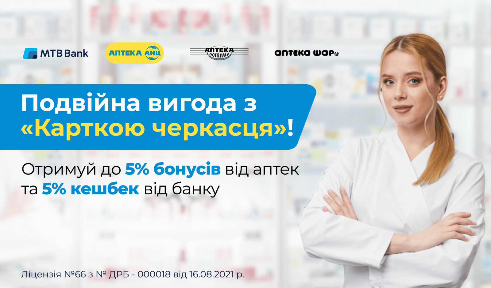 Чудова новина для черкасців! Аптеки під брендами «АНЦ», «Копійка» та «ШАР@» стали партнером «Картки черкасця» від МТБ Банку